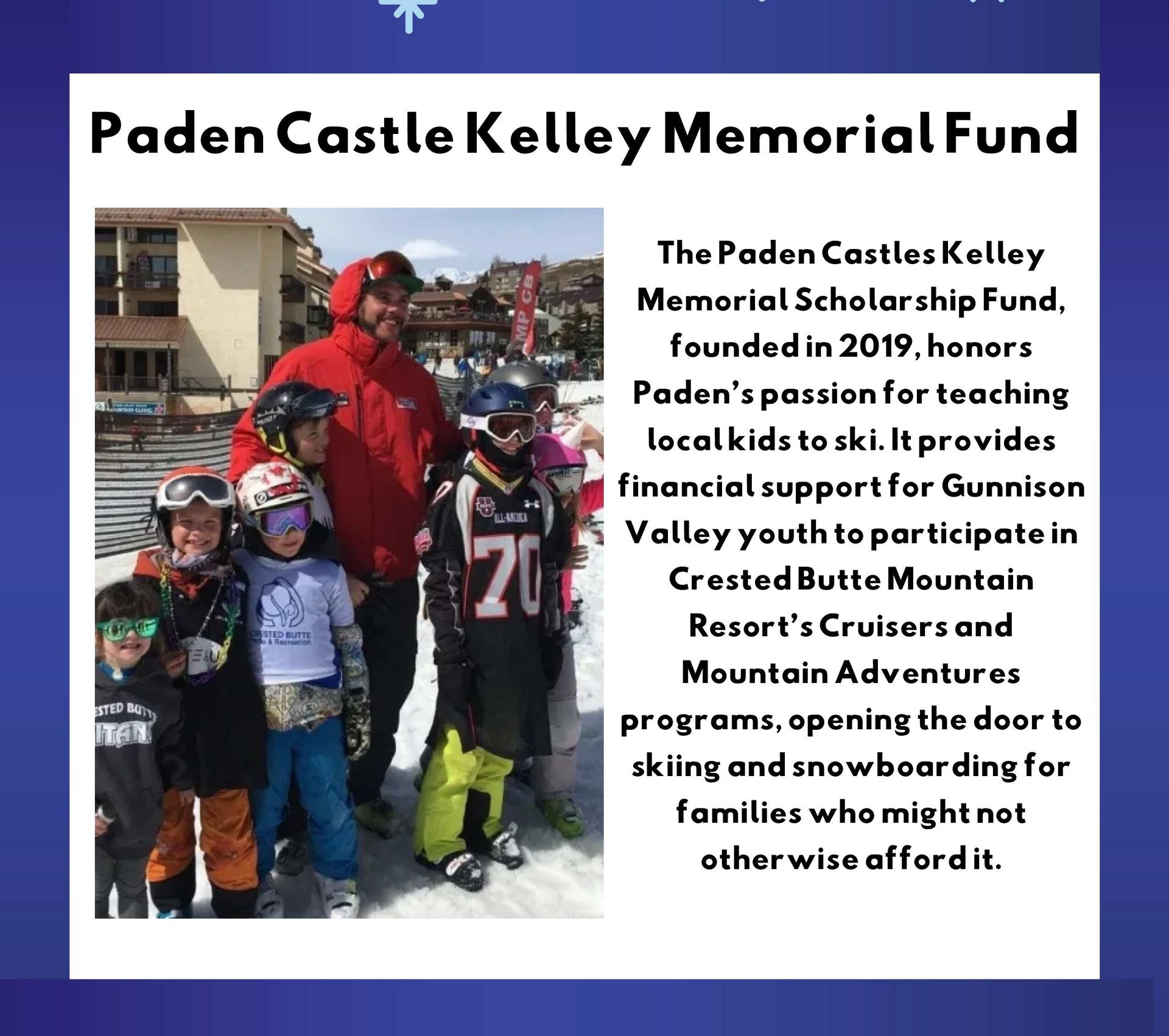 This fund was created in honor of Paden Castles Kelley, an avid skier and passionate instructor.